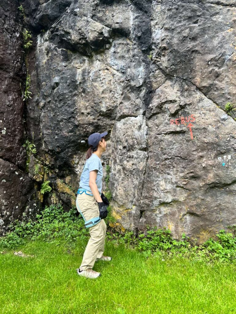 実際、トライ中に持っていた岩が崩れてしまい、危険を感じて終了。課題の見た目や景色は最高ですが、脆いためおすすめはできません。(周りの岩も同じ感じでした。)