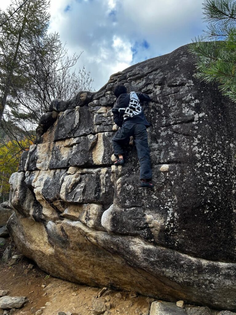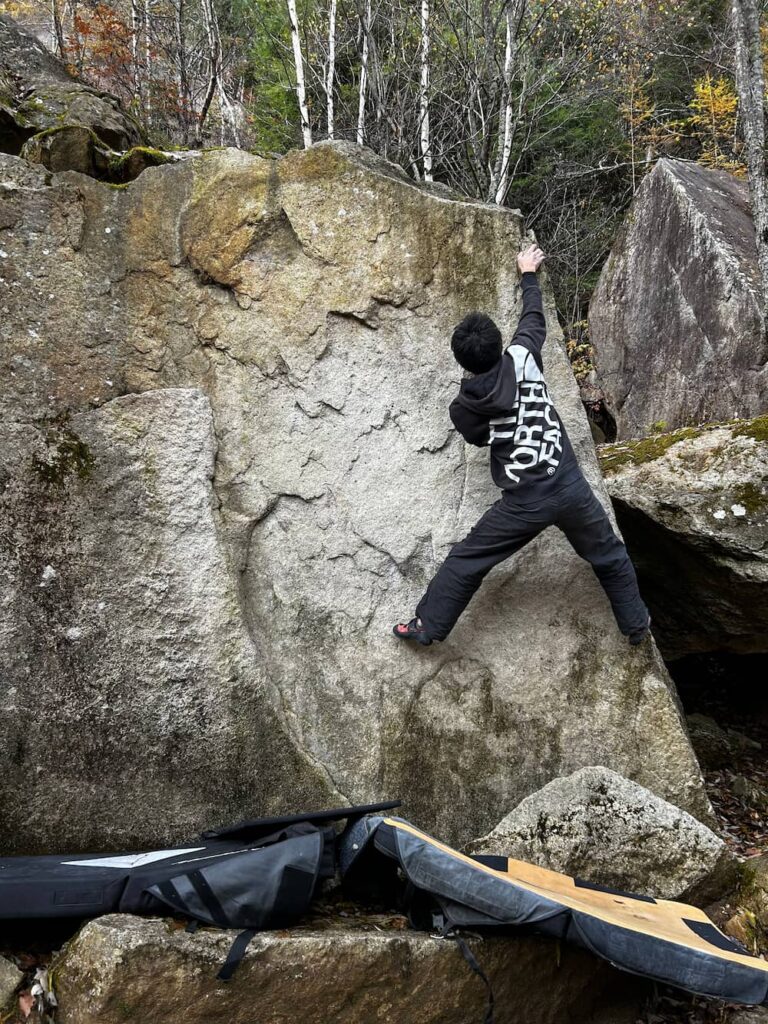 早朝まで雨が降っていたこともあり、まずは広い範囲を歩きながら、登れそうな簡単な課題をこなしていく作戦に。