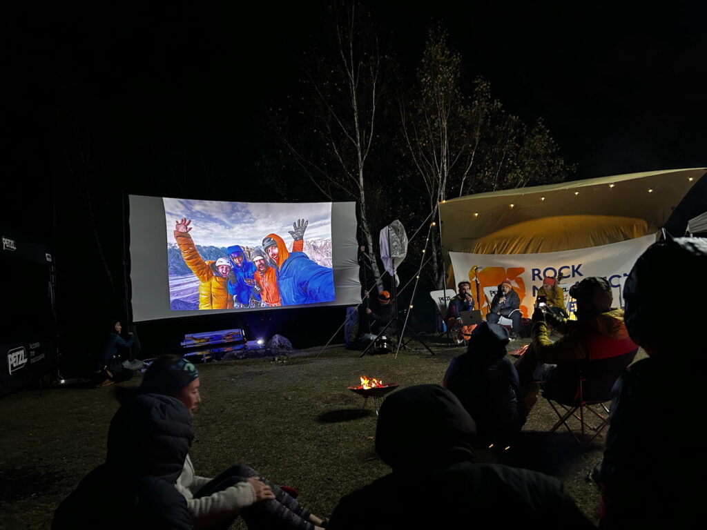 夜は会場でゲストクライマーによるトークショーがあり、焚き火を囲みながら少し観覧。