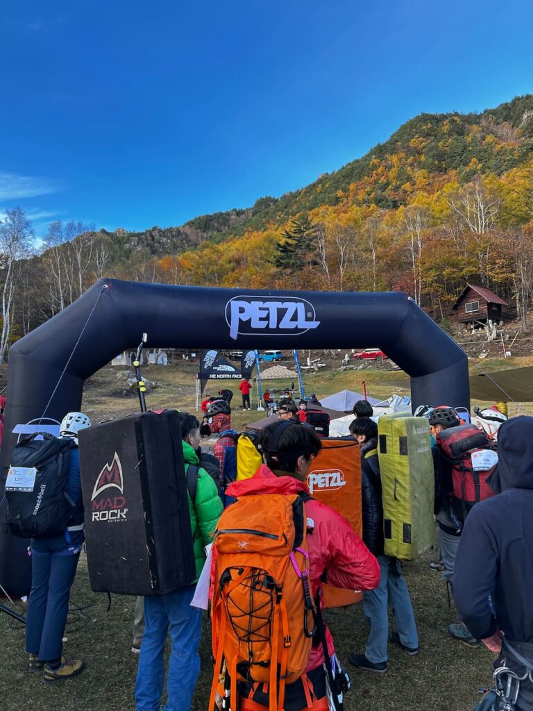 秋晴れの空の下、他の参加者たちとポイントを競い合うクライミングイベントは最高でした。