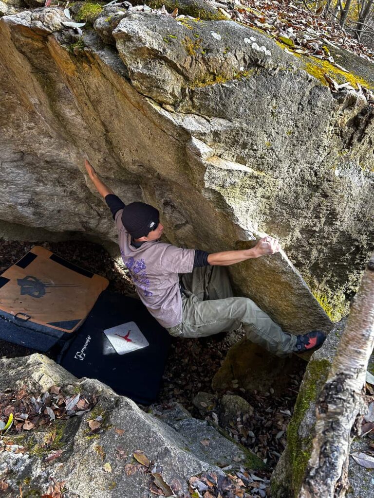 岩が濡れていて、見た目よりも滑る箇所も多く、登れない課題もちらほら。